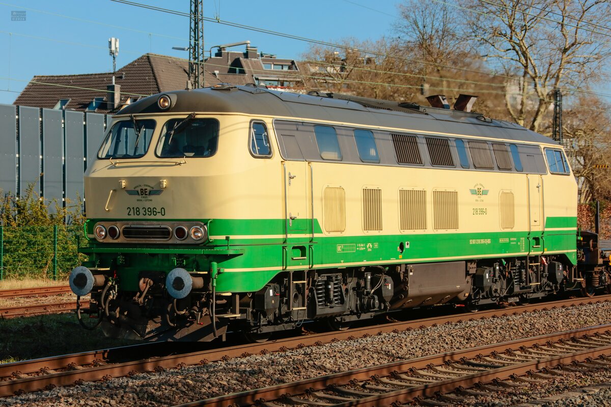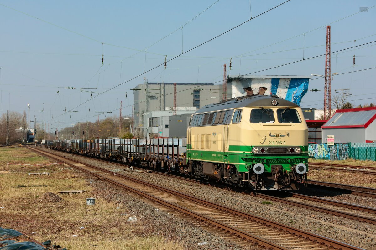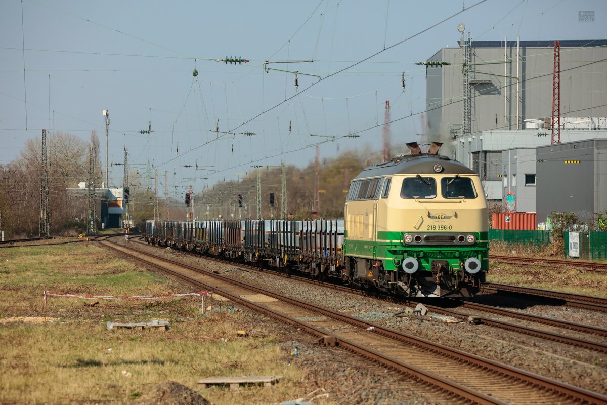 BEG 218 396-0 mit leeren Aluzug in Hilden, März 2026.