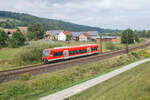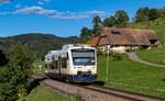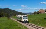Elektrifizierung Südbahn - BOB-Triebfahrzeuge vorher# - Am 20.10.2018 haben VT 71 (650 746) und VT 70 (650 745) der Bodensee-Oberschwaben-Bahn als BOB 87584 von Friedrichshafen Hafen nach Aulendorf kurz nach dem Verlassen des Schussentobel bei Kilometer 158.4 die Schussen auf den letzten fünf Kilometern sieben Mal überquert