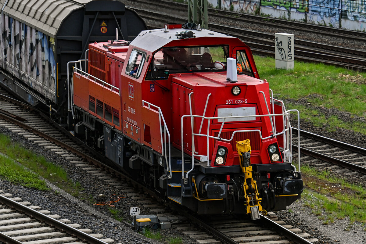 D-DB 261 028-5 kam am 17.04.2026 mit ihren "H-Wagen" vom Lübecker Konstinkai/ Konstinbahnhof (ALKO). Hier bei der Einfahrt in den Lübecker Hgbf (ALR). Jan-Phillip Ringer