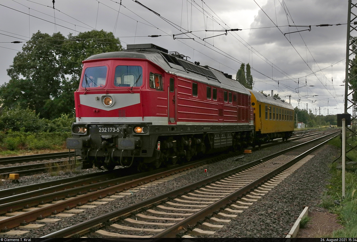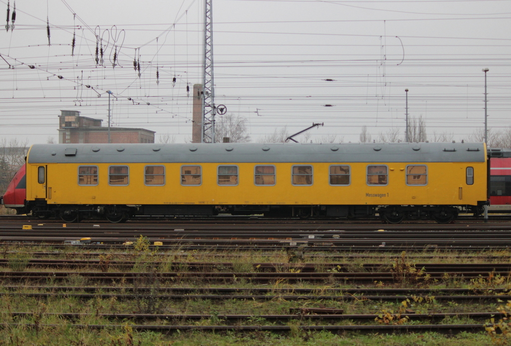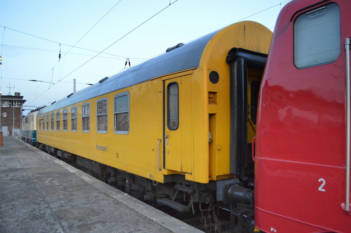 Am Haken von MEG "218 390-3" der Funkmesswagen der DB Kommunikationstechnik GmbH mit der Nr. 60 80 09-24 200-9 (P) 296.3 Magdeburg Hbf. dahinter noch ein MEG Steuerwagen am 18.02.20 Bf. Flughafen Berlin Schönefeld.