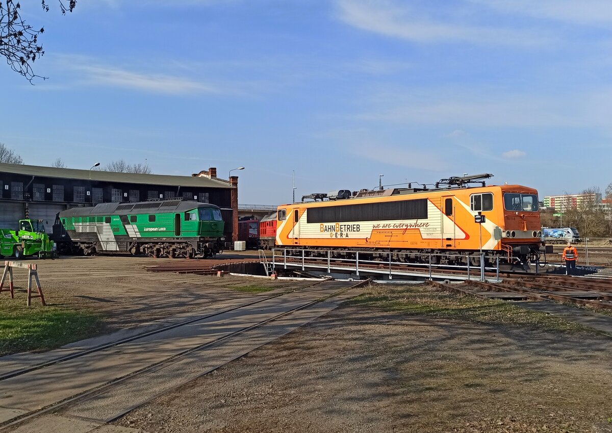 Die Morgenröte bescheint hier am 13.3.2026 um 06.34 Uhr die im oberen Bahnhof von Osnabrück HBF abgestellte 155191-0 der Leipziger Dampf KulTour. Gerd Hahn