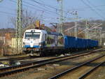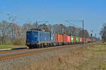 EGP 193 838 brachte am Morgen des 14.05.2022 einen Düngerzug nach Lancken. Hier ist der Leerzug nach der Vereinigung zweier Zugteile in Bergen, zu sehen auf dem Rügendamm, weiter nach Schönebeck. Mit dem Auto hätte es schlimmer kommen können.