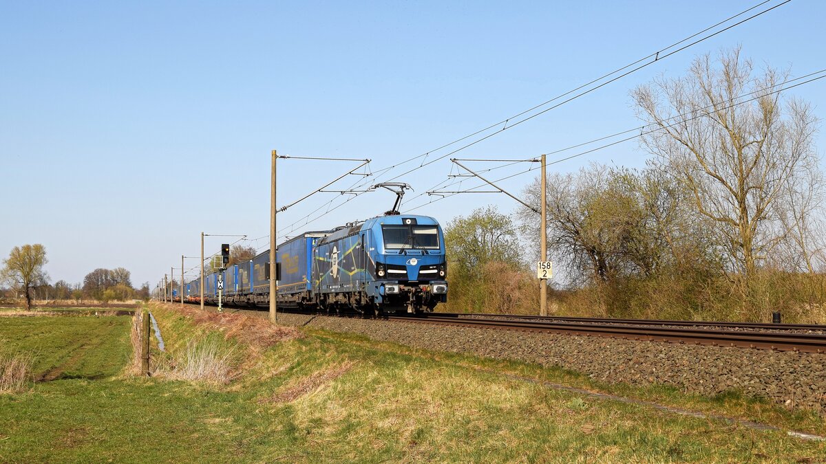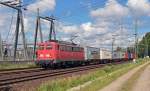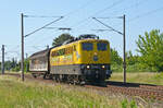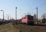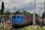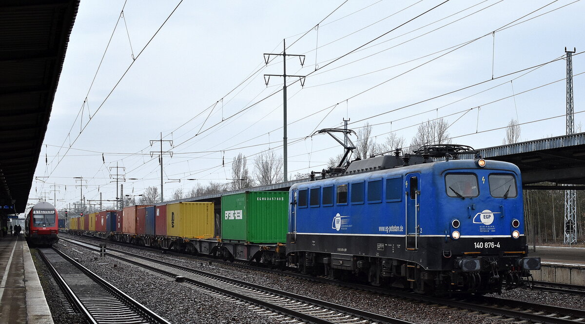 Eisenbahngesellschaft Potsdam mbH, Potsdam (EGP) mit ihrer "140 876-4 (NVR: "91 80 6140 876-4 D-EGP") und einem Containerzug am 22.03.24 Durchfahrt Bahnhof Schönefeld bei Berlin.