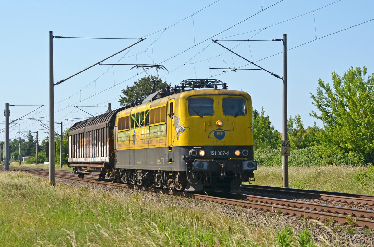 Im Oktober 2021 gelangte einige Zeit lang 151 025 der EGP an den Übergabezug Plattling - Nürnberg Rbf. Bei Pölling gelang ein Bild, 06.10.2021 Korbinian Eckert