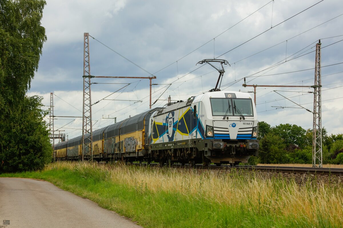 193 848-9 EGP Vectron mit ARS-Altmann in Dedensen Gümmer, Juli 2024.