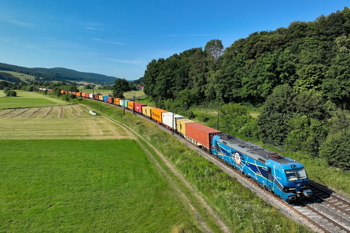 Auch die EGP fährt Containerzüge auf der Nord-Süd-Strecke. Am 22. Juni 2025 konnte ich die 192 104 vor dem gut ausgelasteten DGS 90994 von Nürnberg Hafen nach Dradenau bei Odensachsen im osthessischen Haunetal fotografieren.