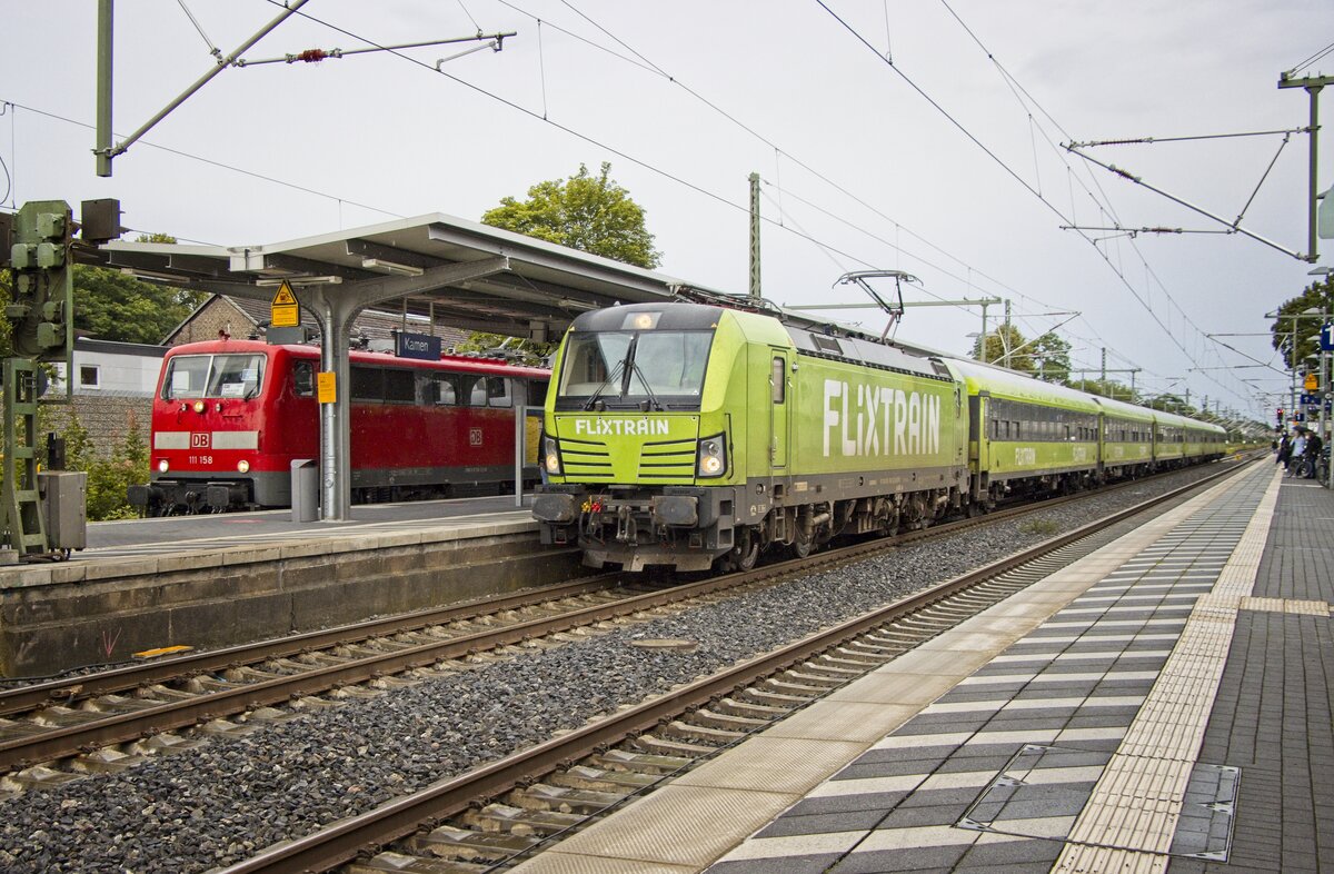 111 158 lässt in Kamen Flix-Train FLX30 überholen (06.07.2021)
