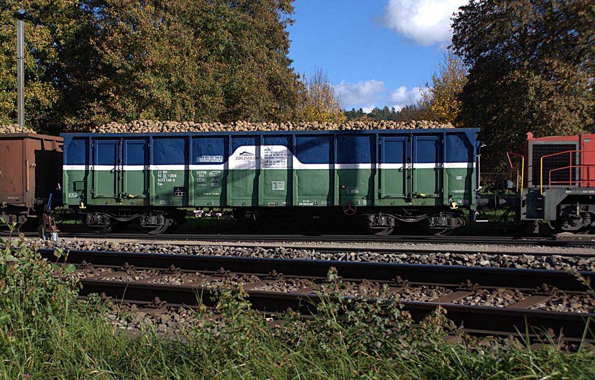 Offener Drehgestellwagen vom Einsteller GATX Rail Germany GmbH mit slowakischer Registrierung mit der Nr. 33 RIV 56 SK-GATXD 5380 006-0 Eanos in einem Ganzzug am 10.07.20 Berlin Hirschgarten.