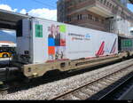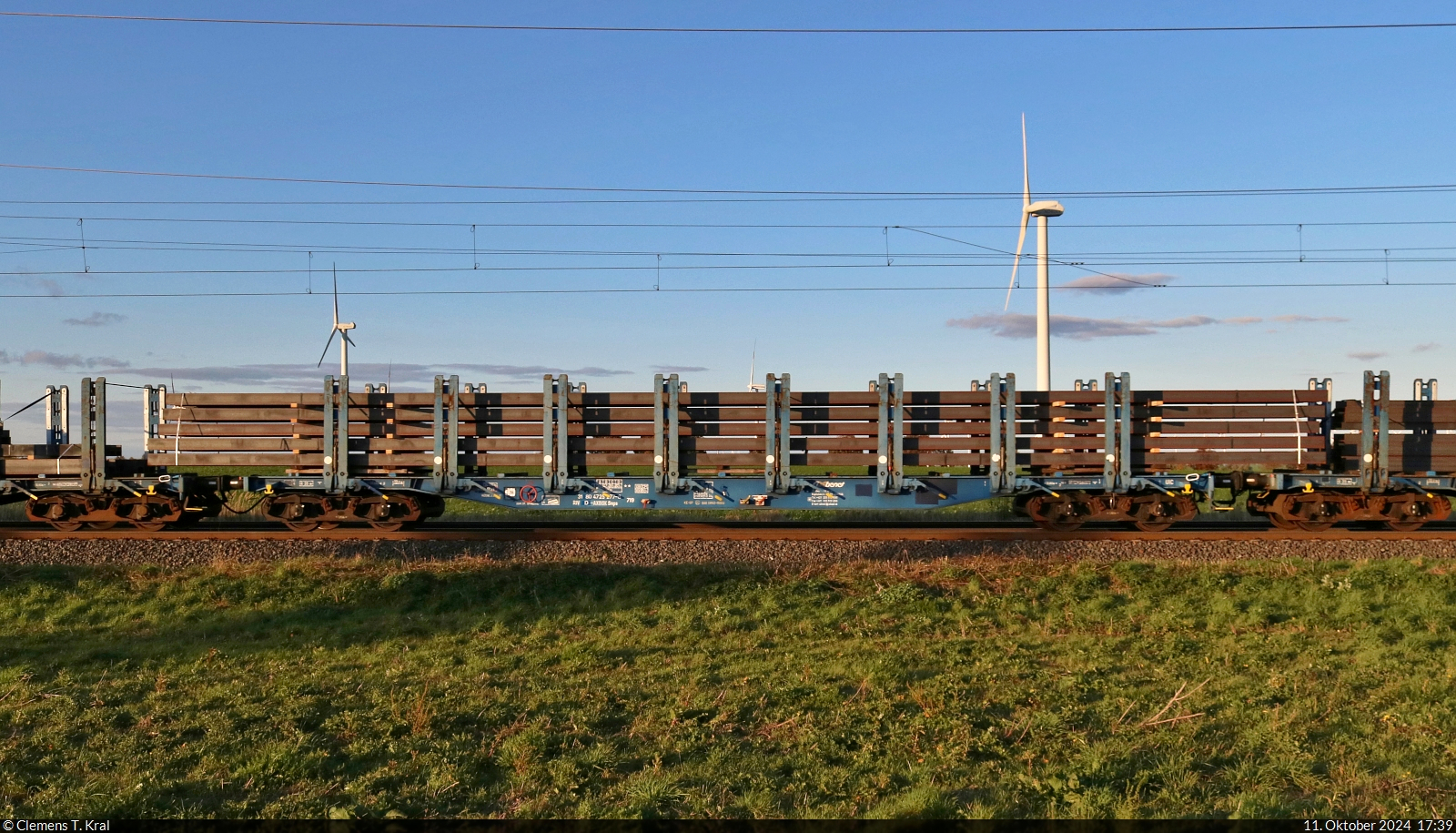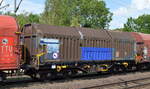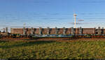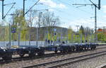 Ganzzug mit Drehgestell-Flachwagen mit Niederbindeeinrichtungen vom Einsteller GATX Rail Germany GmbH, im Bild der Wagen mit der Nr. 37 TEN 80 D-GATXD 4723 872-0 Snps am 30.08.22 Durchfahrt Bahnhof Berlin Hohenschönhausen.