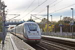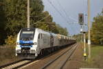 Durchfahrt durch den Bahnhof Thyrow HHPI - Heavy Haul Power International GmbH, Erfurt [D] mit ihrer Eurodual Lok 2159 251-8 [NVR-Nummer: 90 80 2159 2051-8 D-RCM] und einem Schüttgutwagenzug am 03. November 2023.