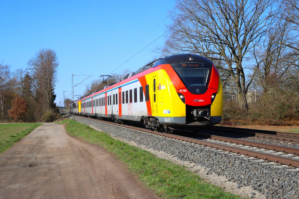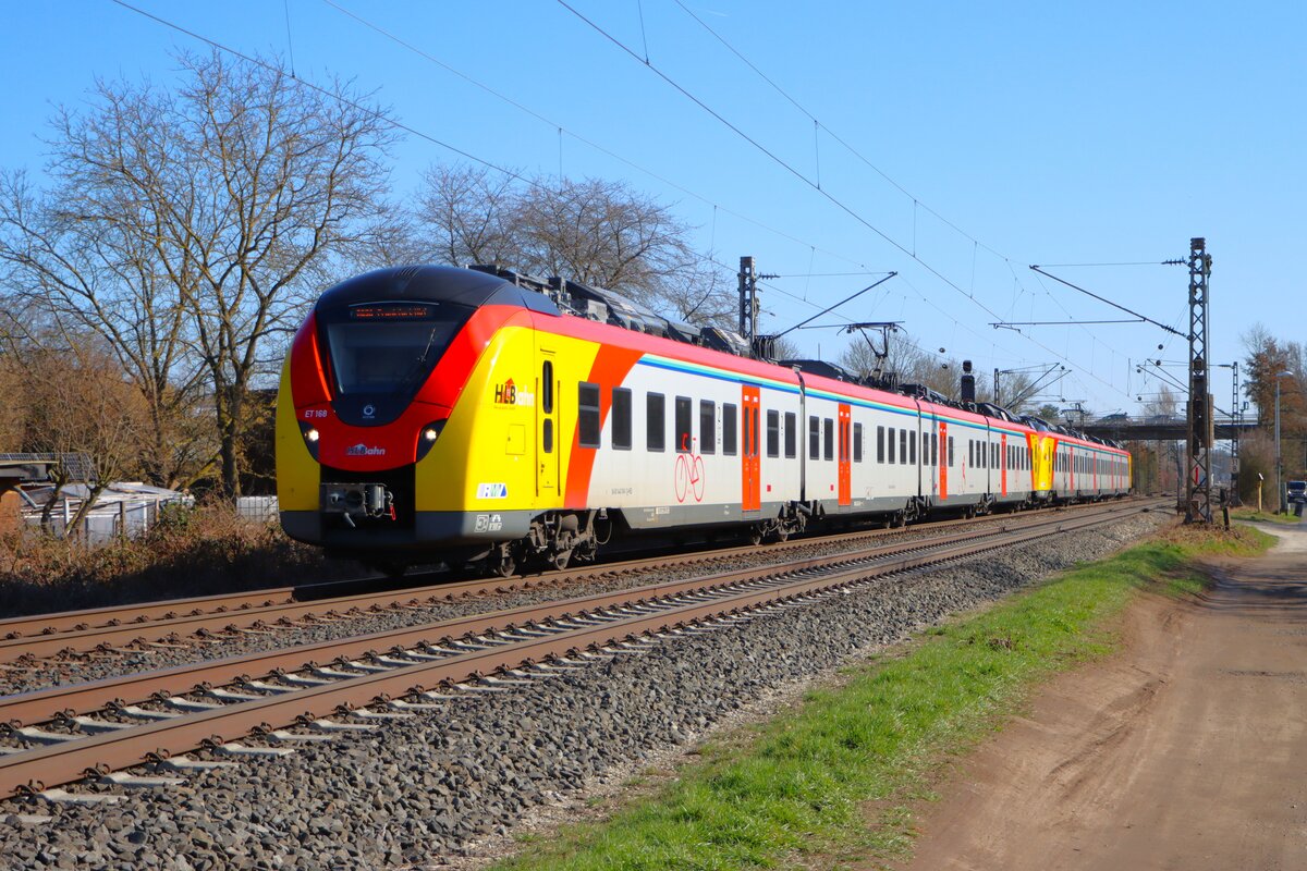 Am 05.03.2026 verlässt der HLB-ET 271 mit einer RB nach Dillenburg den Bahnhof Wetzlar. Der Kasten rechts im Hintergrund ist das Bahnhofsgebäude (mit integriertem Stellwerk).