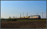 186 941 kommt mit einem voll beladenen Containerzug durch Niederdodeleben gen Helmstedt gefahren.