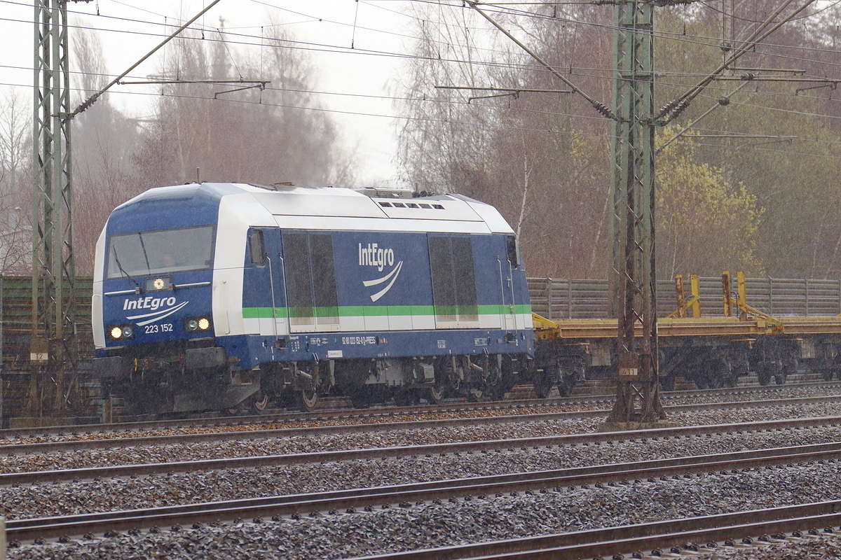 Der Railadventure "Waschbär" 2016 902 fuhr am 08.03.2026 mit zwei neuen Vectron (5370 174 PL-ID & 5370 180 PL-ID) sowie dem Aussichtswagen LUXON (CH-RADVE 61 85 8990 003-3 SRmz) im trüben Abendlicht durch Thüngersheim gen Norden.