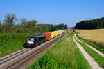 193 601 MRCE/WLC mit einem Containerzug bei Parsberg Richtung Nürnberg, 18.07.2021