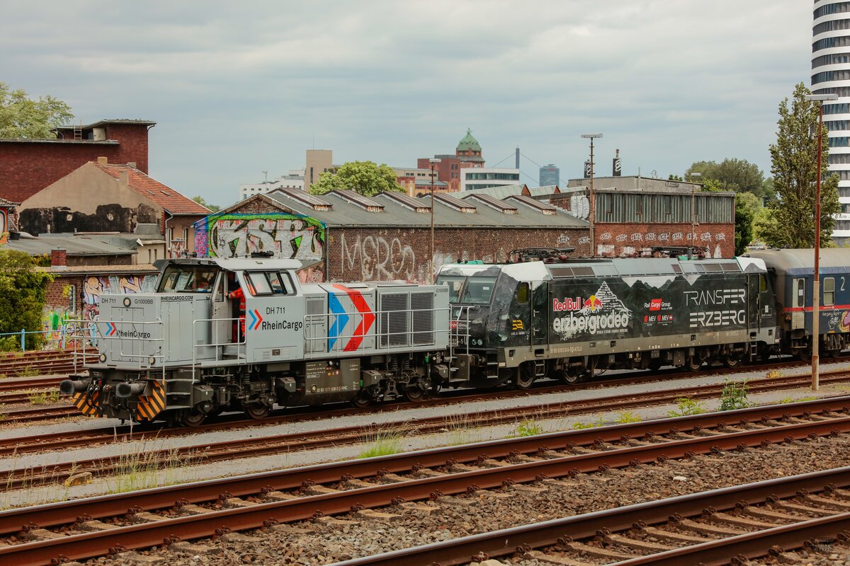 192 034 RHC "Unterwegs mit Ökostrom" mit einem Kesselzug bei Herrnberchtheim Richtung Ansbach, 09.10.2021