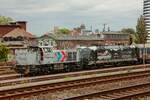 Die DE 508 von RheinCargo rangiert am 07.01.2026 im verschneiten Neusser Hauptbahnhof