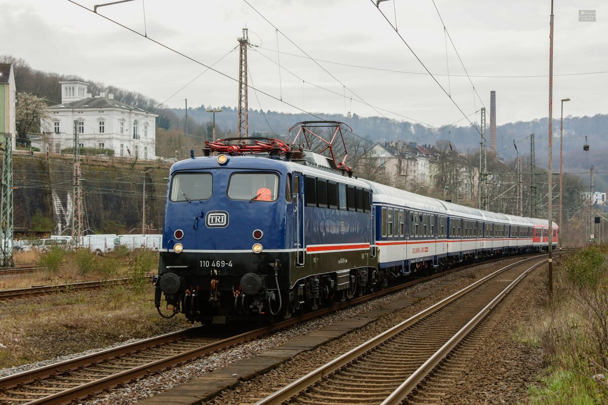 TRI 111 054-3 mit TRI-Wagenüberführung in Wuppertal, August 2024.