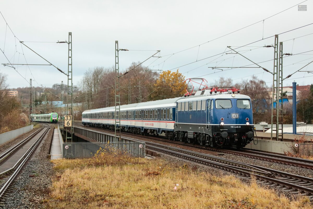 Zwischen den morgendlichen und abendlichen RE 3-Verstärkerfahrten von Duisburg nach Hamm und zurück ist die TRI-Garnitur in Düsseldorf abgestellt. Am 21.02.2025 verlässt 110 469-4 den Abstellbahnhof.