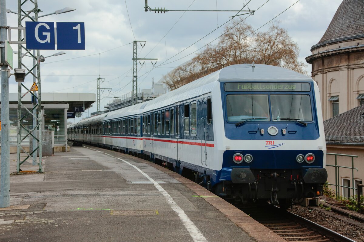 TRI 111 130 mit einem Fußballsonderzug aus Münster zur 2. Liga Partie gegen einen bekannten Fußballverein aus Gelsenkirchen am Vormittag des 19.4.26 in Sythen Jens Hubers