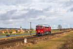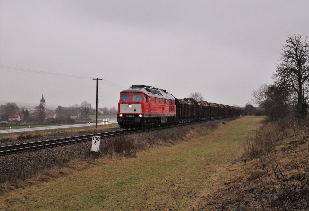 232 283-2 und 155 110-0 (WFL) fuhr am 22.01.21 wieder einen Holzzug von Triptis nach Kaufering. Hier zu sehen in Dreitzsch.