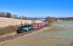 232 356-6 und 155 110-0 (WFL) fuhren am 21.03.21 mit einem leeren Holzzug durch Pößneck  nach Triptis.