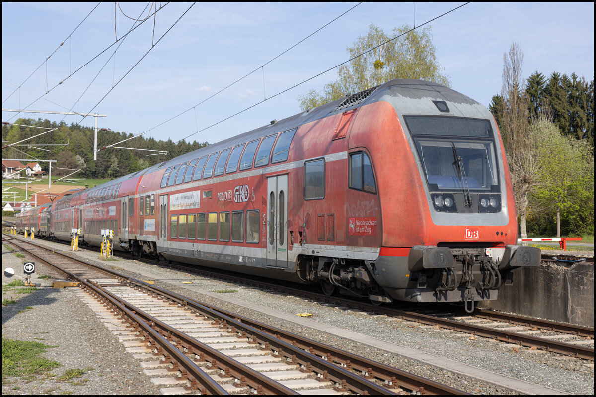 RE1 (RE3116) von Frankfurt(Oder) nach Magdeburg Hauptbahnhof erreicht am 7.4.2017 den Endbahnhof. Schublok war 182 008.