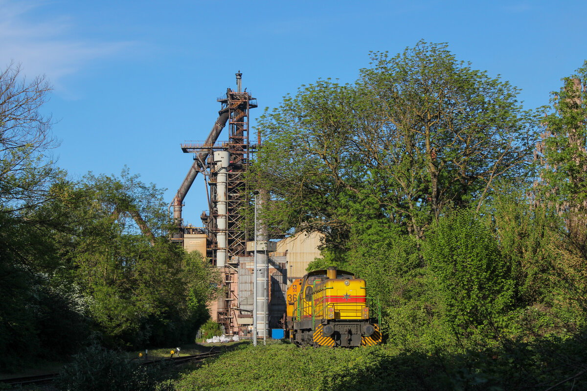 R1 in der Grünen Hölle: R1 (Henschel 31071/1965) rangiert in der Nähe des Hochofen 5. Dabei kommt sie fast bis zum ehemaligen Bahnübergang an der Saarlouiser Straße vor, wo dieses Bild entstanden ist. (25.04.2026) Leonhard Groß