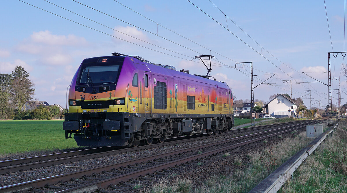 … in Form der Euro9000 Lok 2019 308-6, als Lz am 6. März 2024 in Wickrathhahn.