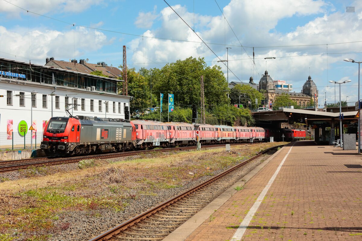 MEG Eurodual 159 225-2 mit Lokzug mit DB 215 902-8, 215 909-8, 215 907-7, 215 906-9, 215 901, 215 910-1, 218 220-2 & am Schluss DB 112 187 zur Verschrottung nach Opladen, zusehen in Wuppertal, Juli 2025. Daniel