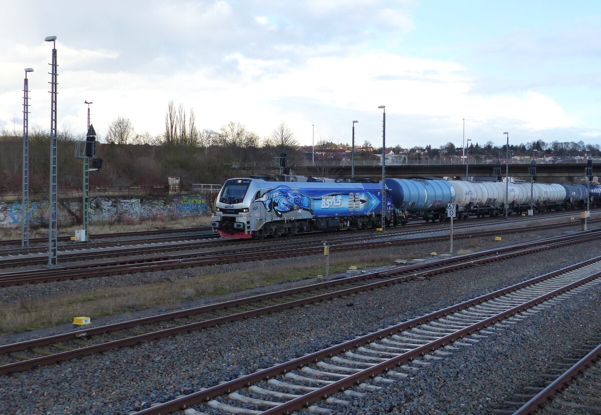 BSAS Eisenbahn Verkehrs GmbH, Stadler Eurodual 159 209 ( 9080 2159 209-6 D-ELP ) verlässt Gera mit einem Kesselwagenzug in Richtung Großkorbetha am 30.3.2026