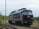 Diese Duallok der HVLE steht am 09.08.2025 im Bf. von Wismar