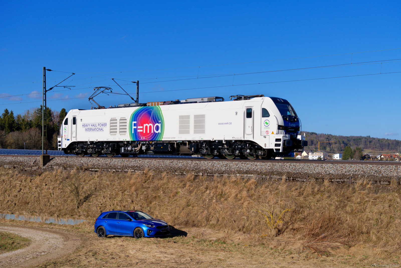Größenvergleich zwischen einem PKW und 159 202 HHPI/ELP als Tfzf bei Parsberg Richtung Regensburg, 23.02.2022