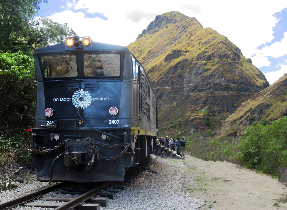 Unterwegs mit dem Touristenzug von Alausi (2360 müM) abwärts zur Teufelsnase bis zum Bahnhof Sibambe (ca 1800 müM). Alausi, 05.08.2018