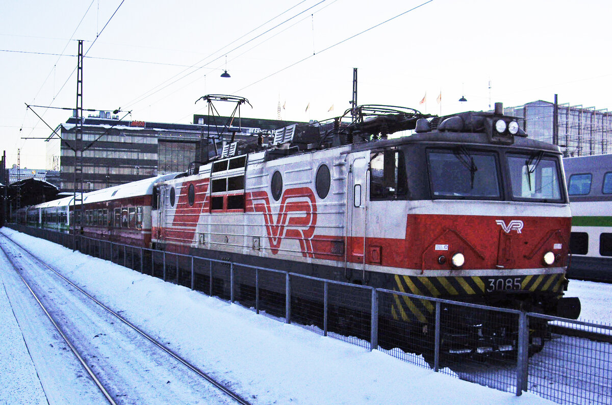 Nachdem Lok Nr.3036 mit IC713 aus Kuopio nach Kajaani kam hat sie IC70 nach Helsinki übernommen und stellt in nun in Kajaani am Bahnsteig bereit. Aufnahmedatum: 27.07.2017