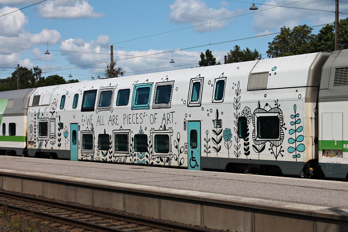 Sr2 3238 mit dem Nacht- bzw Autozug von Helsinki nach Rovaniemi kurz vor Kemi. Kemi, 11.8.2024