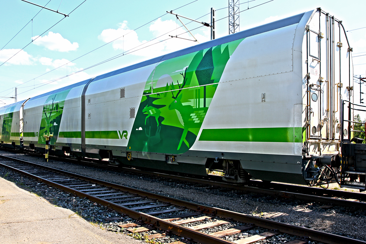 Schiebewandwagen der VR Transpoint,Typ Gbls am Bahnhof Kemi den 22.7.2014