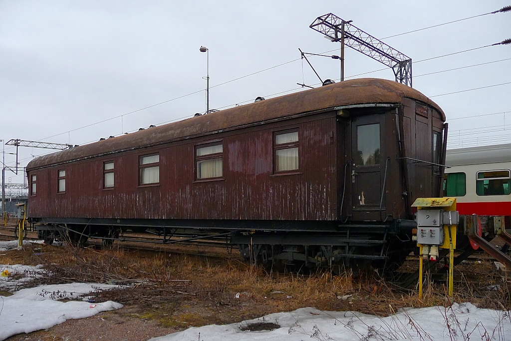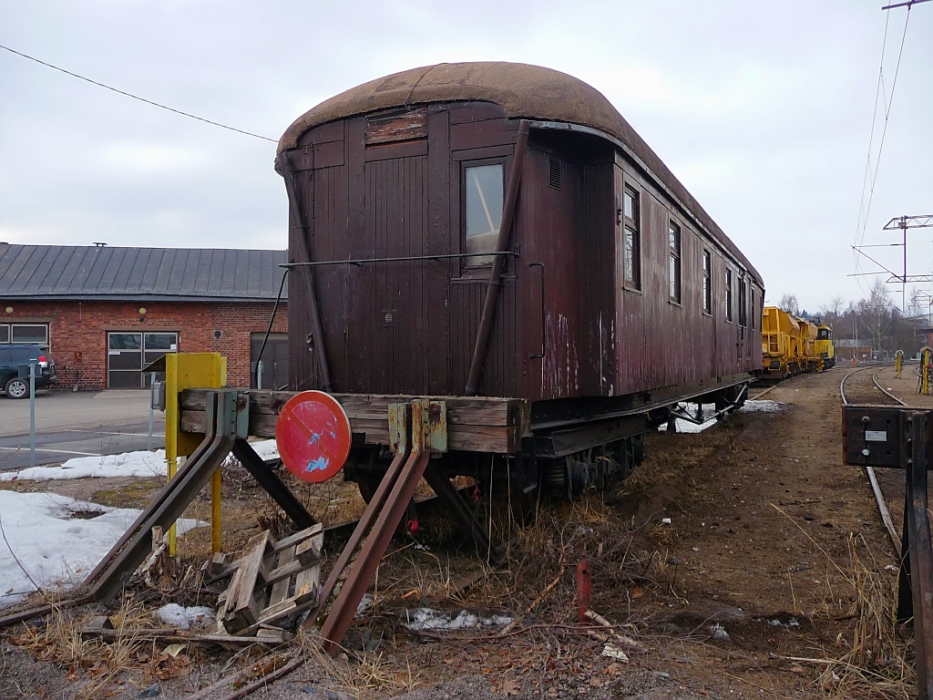 Ein alter Personenwagen Nr.1004 der VR im Finnischen Eisenbahnmuseums in Hyvinkää, 14.4.13