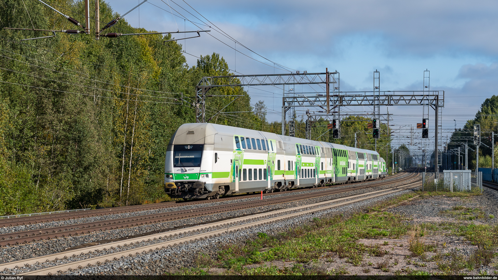 Mit etwas Phantasie sieht man bei diesem Steuerwagen ein recht grimmiges Gesicht: Einfahrt des IC von Rovaniemi nach Helsinki in Tervola. Tervola, 10.8.2024