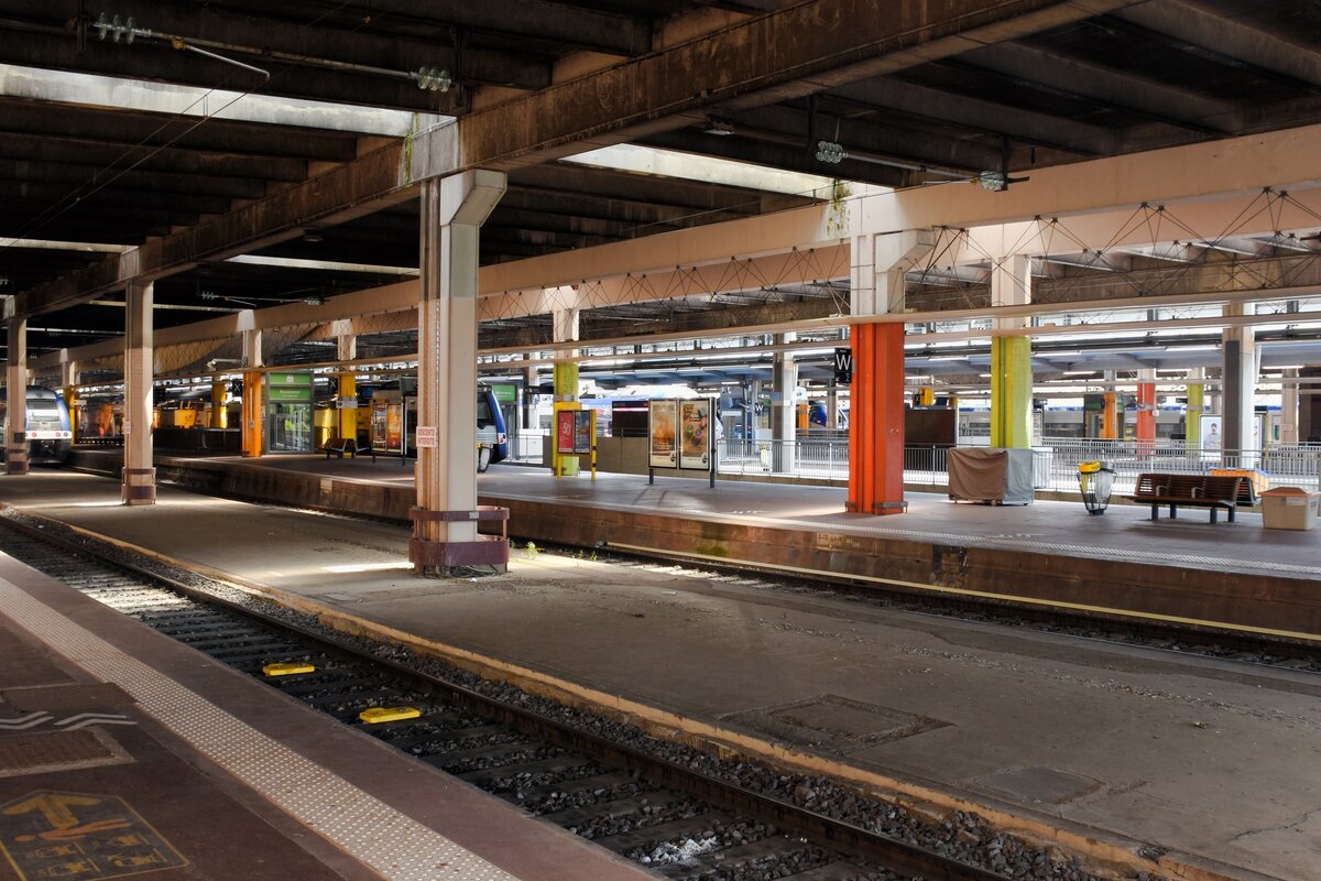 METZ (Grand Est/Département Moselle), 21.06.2023, Bahnhof Metz-Ville, der durch seine als Parkdeck dienende Überdachung sehr dunkel wirkt Reinhard Zabel