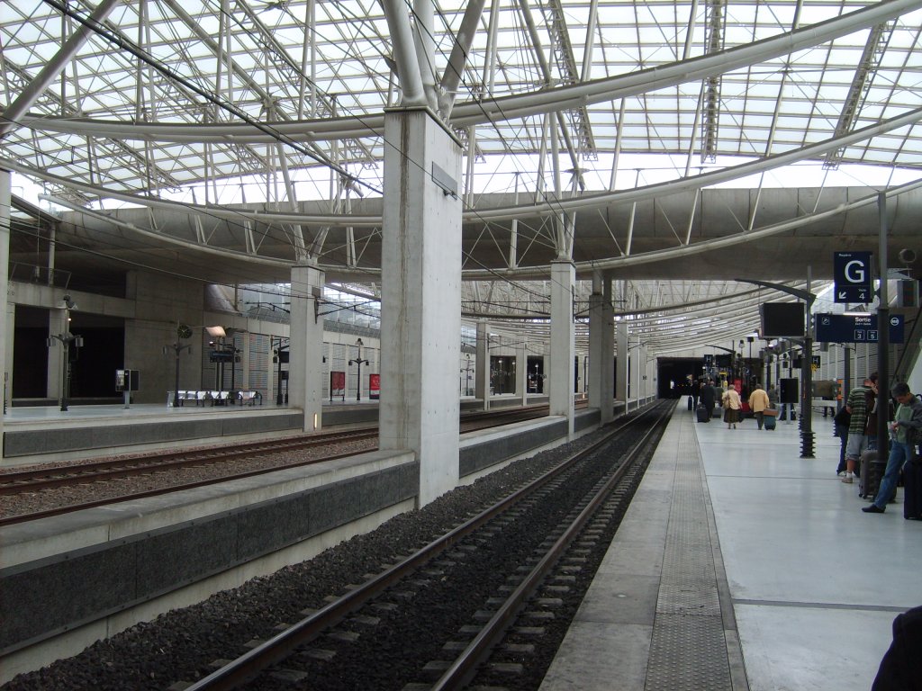 Von hier aus kann man in wenigen Minuten in den Flughafenbereich gelangen. Er befindet sich oben. Zu den verkehrenden TGVs - sowie auch zu den TER Bahnsteigen der SNCF geht´s nach unten. Im Hintergrund befindet sich eine angepasste Abflugtafel. Auch, wenn diese mehr zu bieten hat, als die der SNCF, kommt jeder weg, denn der Fahrplan ist gefüllt - auch ins Ausland. (1.08.09)
