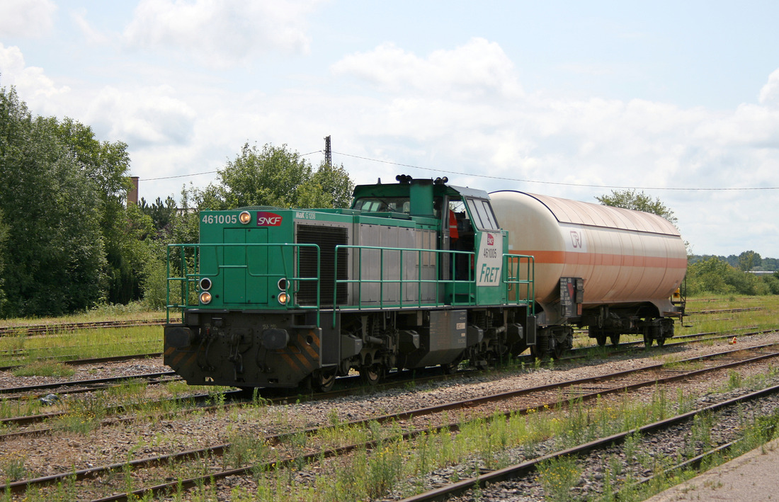 SNCF BB61017 mit Güterzug bei Kehl-Neumühl in Deutschland frühmorgens unterwegs Richtung Westen.