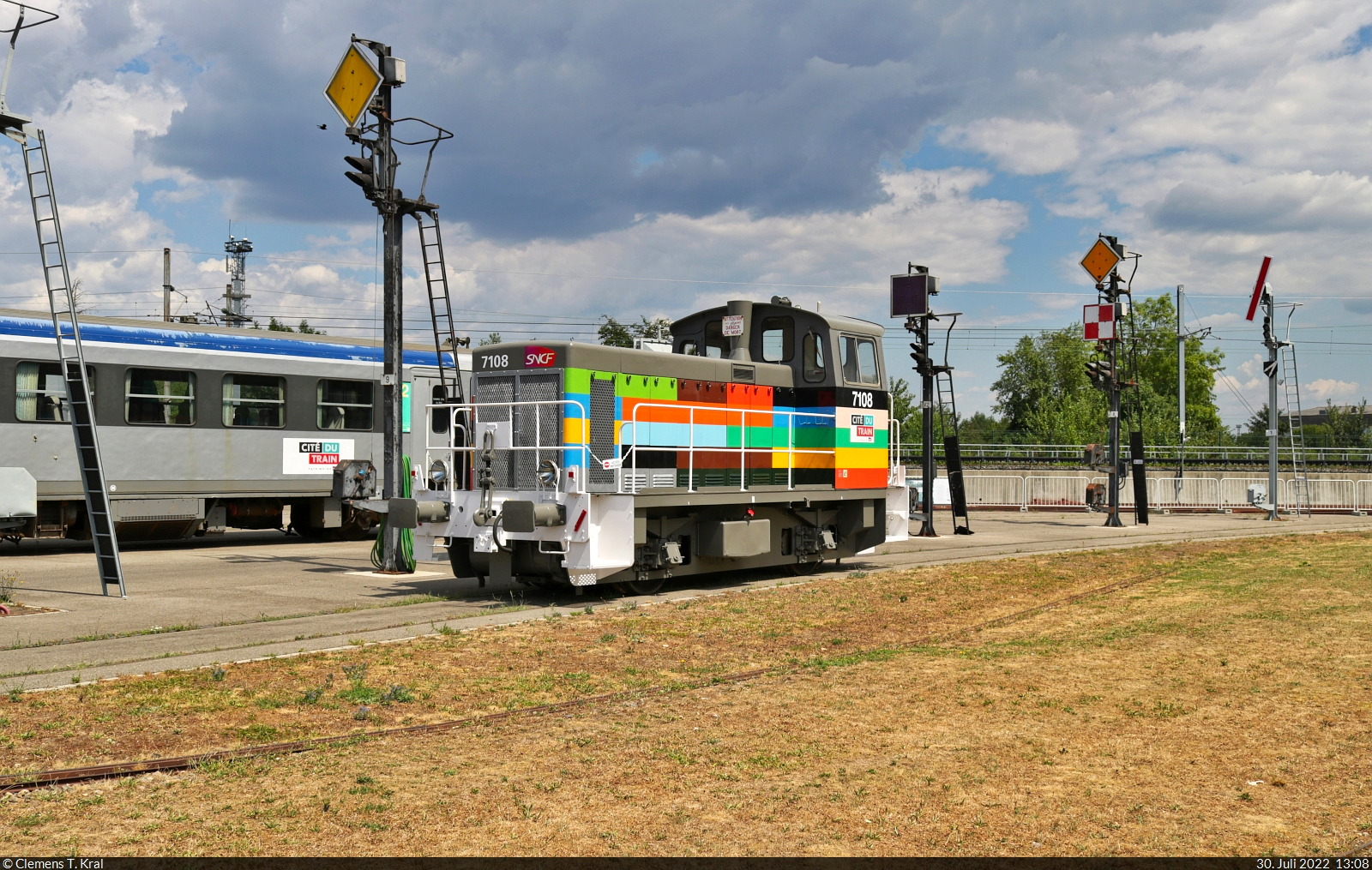 Die Farben der Lok 7108 und der Ort der Aufnahme lassen darauf schließen, dass es sich hier um die "Hauslok" des Museums handeln dürfte. Die Aufnahme entstand am 11.3.2016 im Freigelände des Eisenbahn Museum in Mühlhausen.