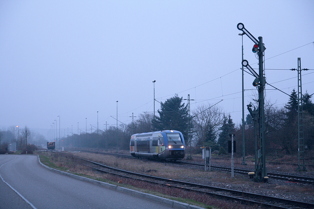 Bahn im Markgräfler Land. X 73901 auf der Klemmbachbrücke in Neuenburg. März 2019.