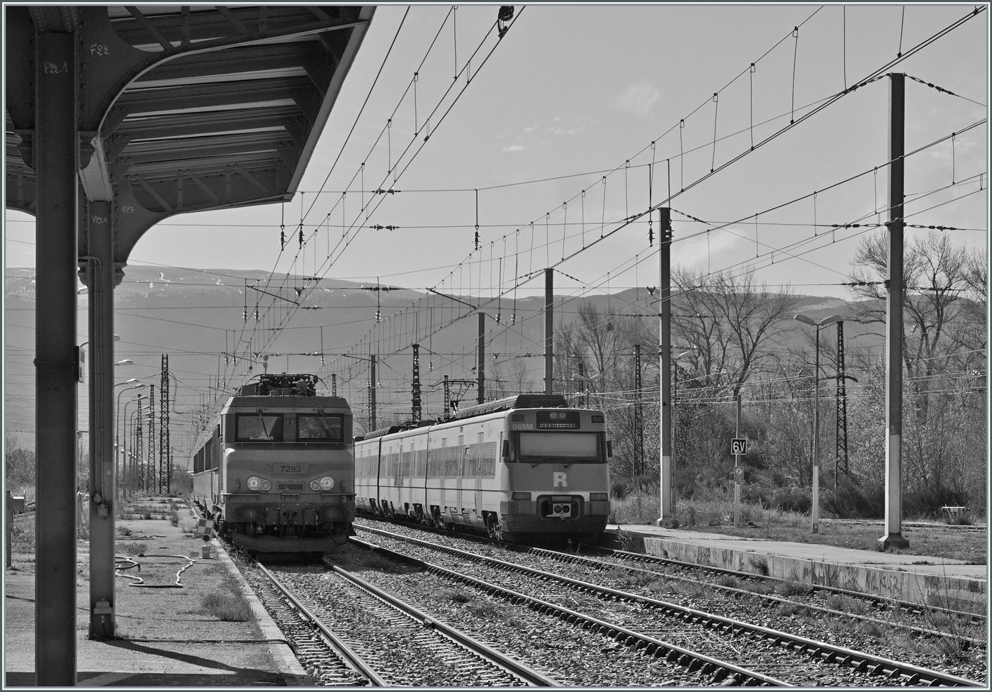 Die SNCF BB 7281 wartet in Genève mit dem Catalan Talgo auf die Abfahrt nach Barcelona Sants.
