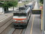 Drei verschiedene Lackierungen der BR BB 7200 der SNCF. Die 507211 mit TER 871628 Toulouse Matabiau-Brive la Gaillarde auf Bahnhof Gourdon am 2-7-2014.
