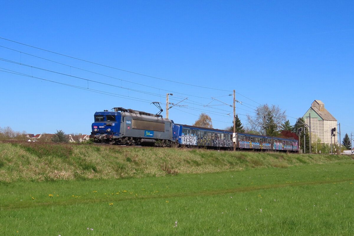 Mit einem Autozug durchfährt BB-22268 im April 1987 den Bahnhof Nice/Nizza