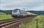 Montag den 29.09.2025 um 12:14 Uhr in Bellegarde-sur-Valserine (F) im Département Ain. Im alten Bahnhofteil des Bahnhofs Bellegarde fährt soeben ein Güterzug durch. Er besteht aus folgenden Triebfahrzeugen; 1. Lok: 91 87 0037 515-0 F-AKIEM (Interne Bezeichnung: akiem PRIMA E37515), 2. Lok: 91 87 0037 519-2 F-AKIEM (Interne Bezeichnung: akiem PRIMA E37519). Diese Lokomotiven sind für drei Stromsysteme zugelassen: 1,5 kV =, 25 kV 50 Hz, 15 kV 16.7 Hz. Es sind Alstom Prima EL3U/4 Lokomotiven. Beide Baujahr 2008. Ladung der Wagen nach Angaben der Wagenetiketten: Paletten mit 1 Liter Mehrwegflaschen. Bestimmungsbahnhof ist Gare de Publier bei Èvian–les–Bains am Genfersee. In Publier befindet sich auch die Abfüllanlage des Mineralwassers Èvian. Koordinaten GMS (Grad, Minuten, Sekunden): N 46° 6’ 37.2’’ O 5° 49’ 27.4’’