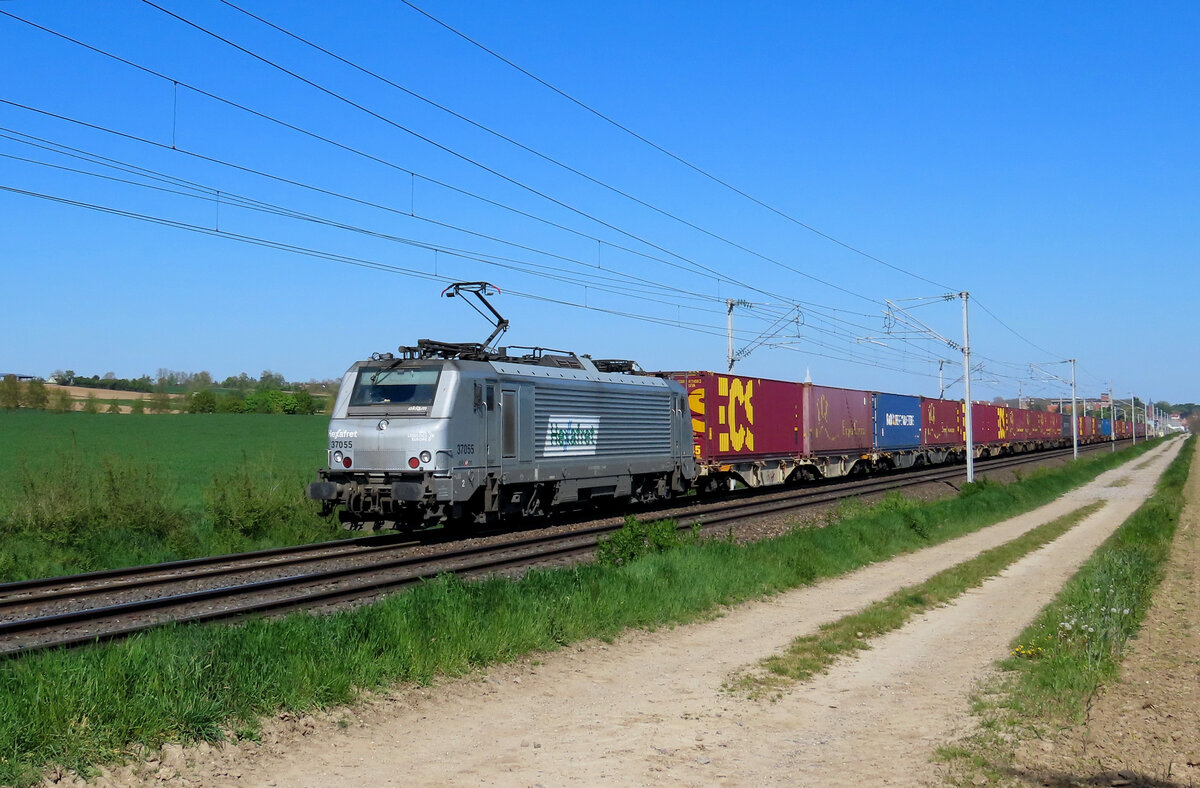 437008 mit Schiebeplanwagen-Ganzzug in Fahrtrichtung Koblenz.