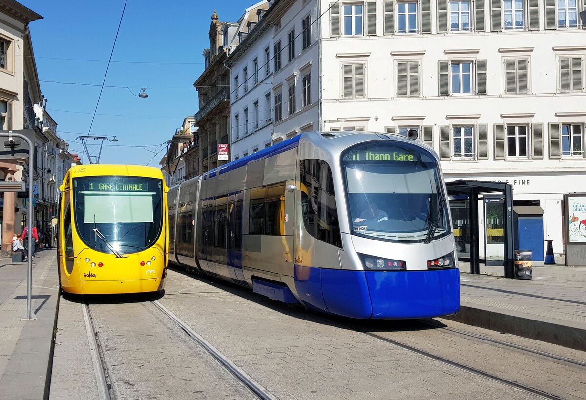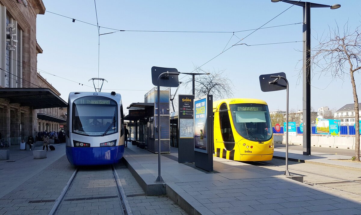 Tram-Train U25523+U25524 (TT12) fährt auf der Tram-Linie T4 von Aulnay-sous-Bois kommend in Bondy ein.