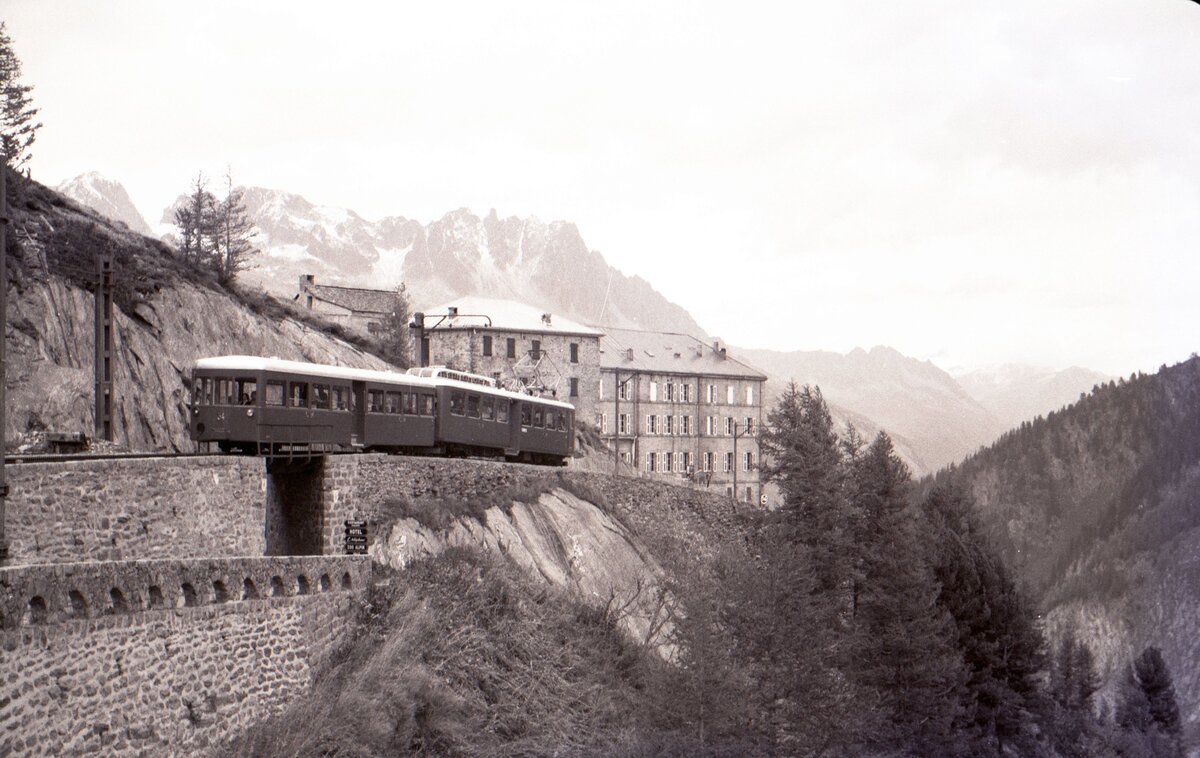 CM_Chemin de fer du Montenvers__Zug der Zahnradbahn mit Tw 41 in der Ausweiche.